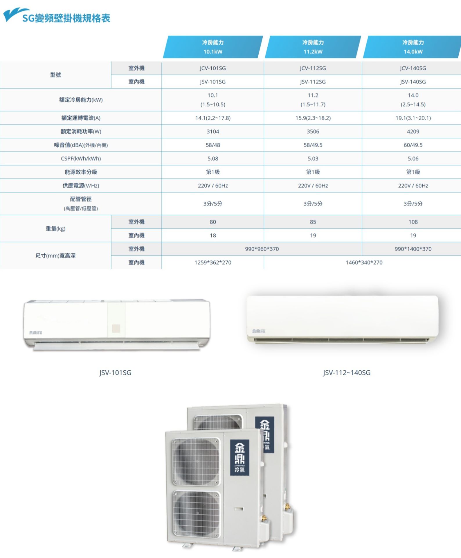 【金鼎JINTING】一對一變頻分離式 壁掛式 SG金商用系列